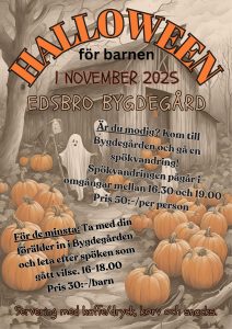 Spökjakt för de minsta inomhus 16.00-17.00 (30:-/barn) och Spökvandring utomhus för de lite större, löpande turer går mellan 17.00 och 19.00 (50:-/pers).